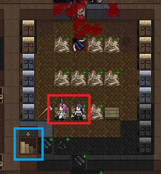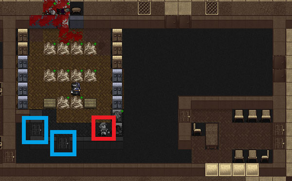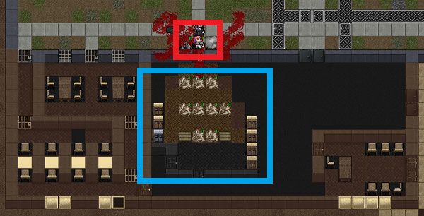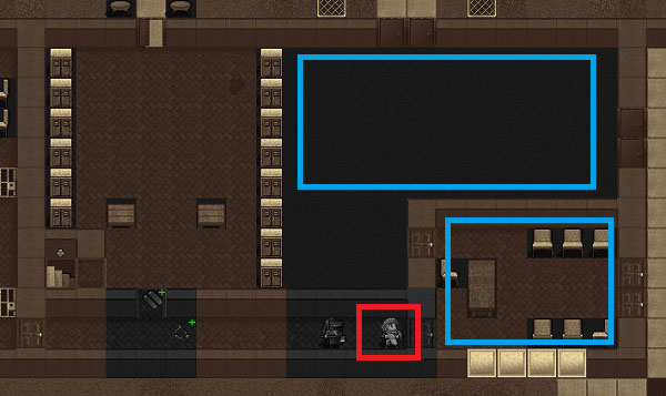 ちなみに地下通路の様子は上の画像。青い四角の「階段」から出発してウロチョロ歩いていたわけですね。真ん中の上側にある部屋は医務室の地下室ですな。