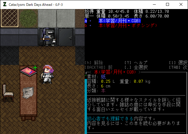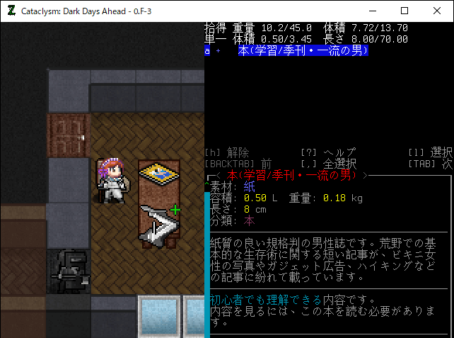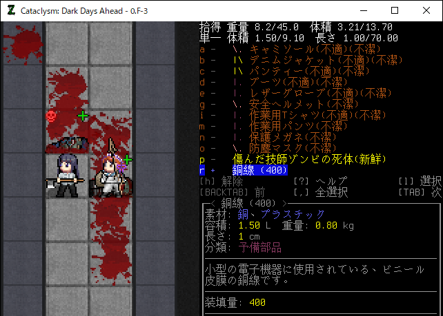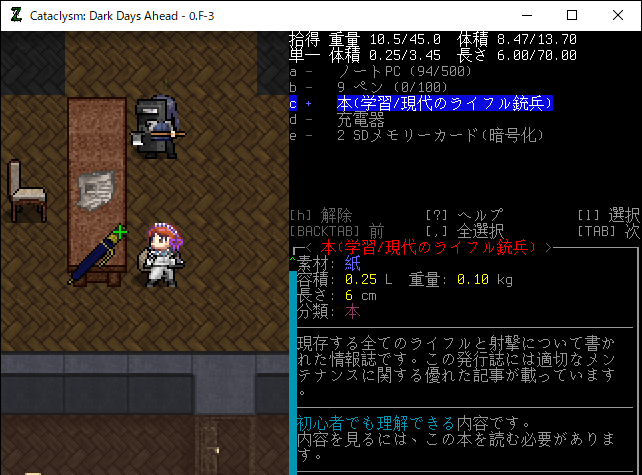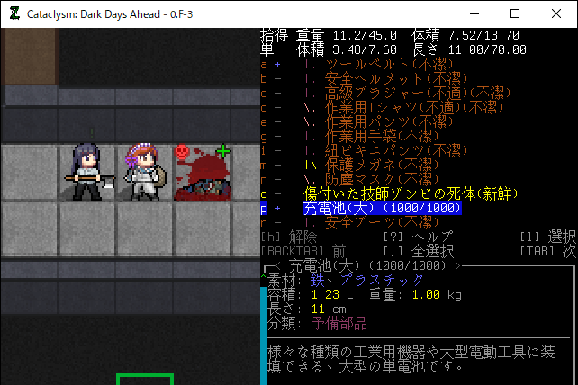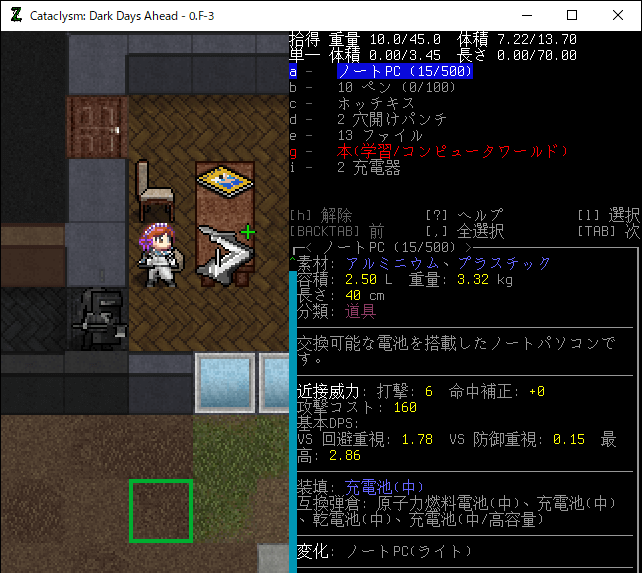 この投稿は「Cataclysm Dark Days Ahead」のプレイ日記です。目次はこちら。前回のプレイ日記はこちら。