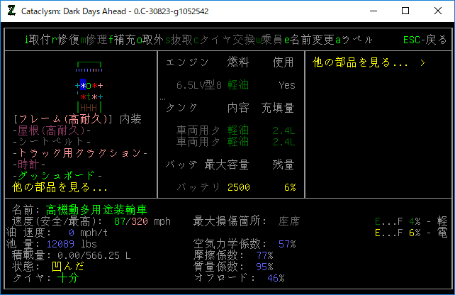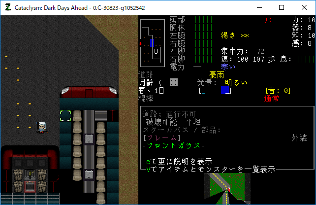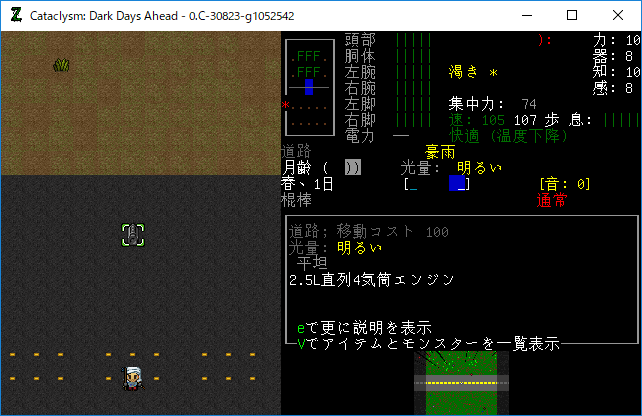この投稿は「Cataclysm Dark Days Ahead」のプレイ日記です。毎日更新をします。目次はこちら。