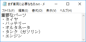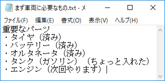 次はタンクにガソリンを補充しましょう。ガソリンスタンドは遠いから行くのはやめた。その辺の自動車からガソリンをかっぱらいます。この場合はゴムホースとガソリンを入れる容器が必要です。