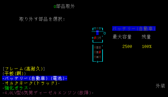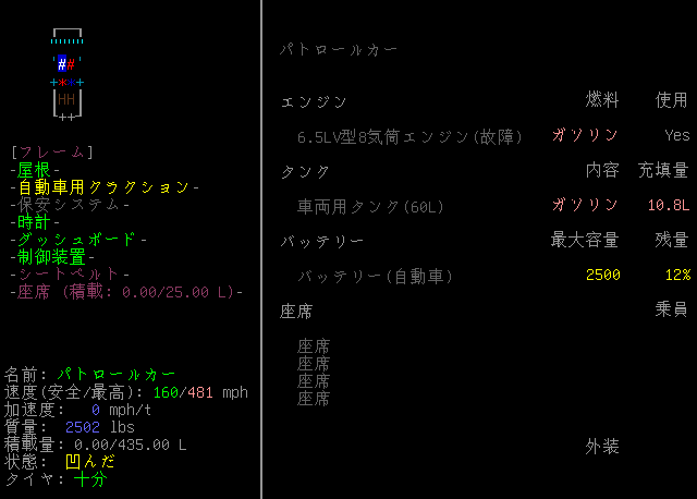 Cataclysmのプレイ日記を始めます。今回は街の車を修理しましょう。修復したパーツごとに記述をしたから時系列がバラバラです。