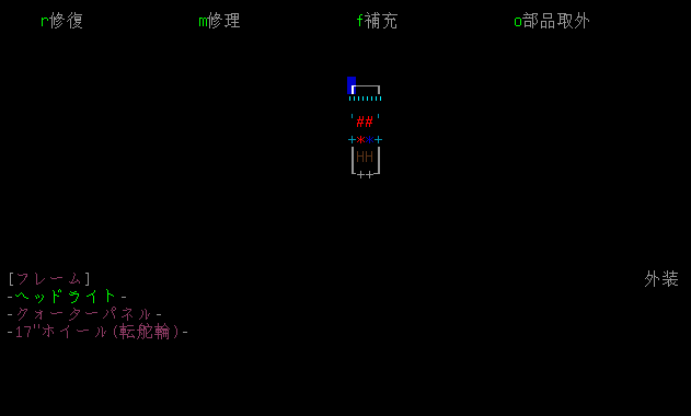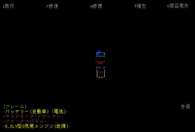 私は街の車を修理して乗り回すつもりです。1から車両を製作する場合は建設コマンド『*』にて実行可能らしい。まずはフレームから組み立てるのか。