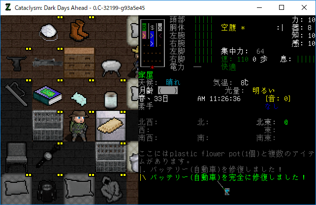 この投稿は「Cataclysm Dark Days Ahead」のプレイ日記です。毎日更新をします。目次はこちら