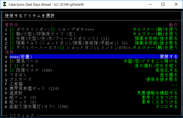 この投稿は「Cataclysm Dark Days Ahead」のプレイ日記です。毎日更新をします。目次はこちら。