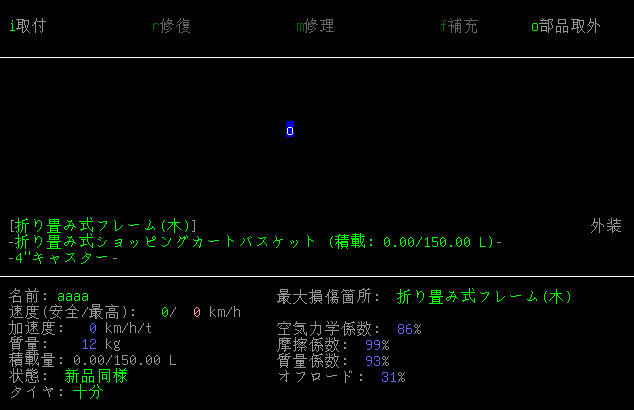 『a』コマンドを押せば折り畳んだカートを元に戻せます。恥ずかしいから早くまともな名前に変えたい。