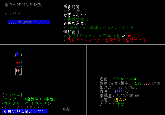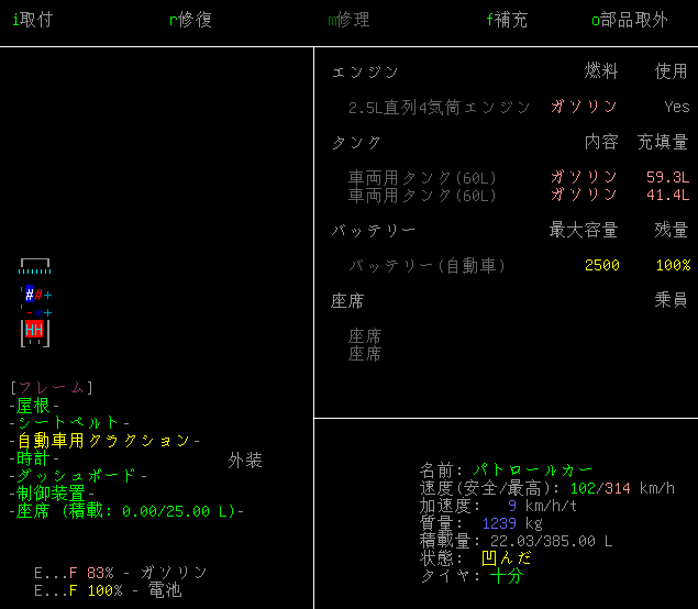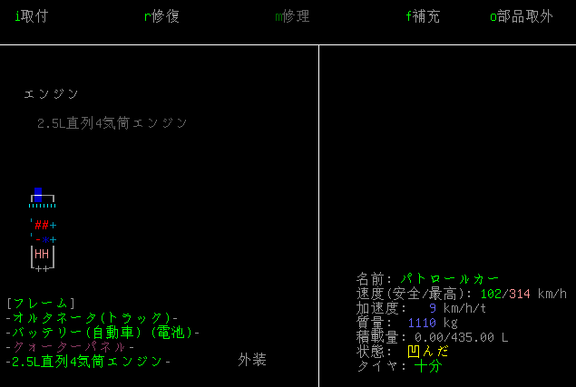 動作制限の改善は後回しにしよう。遠征するためのガソリンと弾薬を集めたい。街中を略奪するには車両がボロボロで不安すぎる。まずは車両の修復と強化を徹底的に行おうぜ。