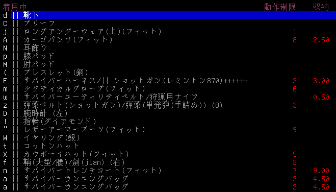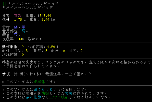 本題に入る前にもう少し装備を変えます。サバイバーランニングバッグはかなり優秀だと気づきました。2つ装備しても戦闘で不覚をとることはないだろう。
