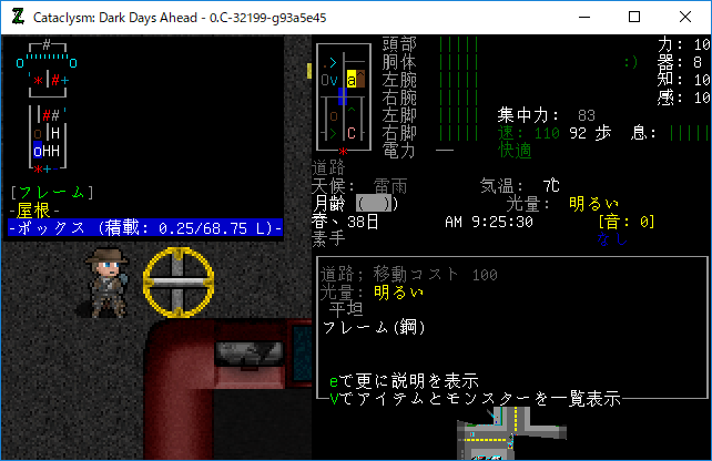Cataclysmのプレイ日記を始めます。前回は装備を整えて動作制限を下げました。しばらくは楽しく車両を整備して遊びたいです。だが悠長にしている暇は無いかもしれません。