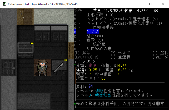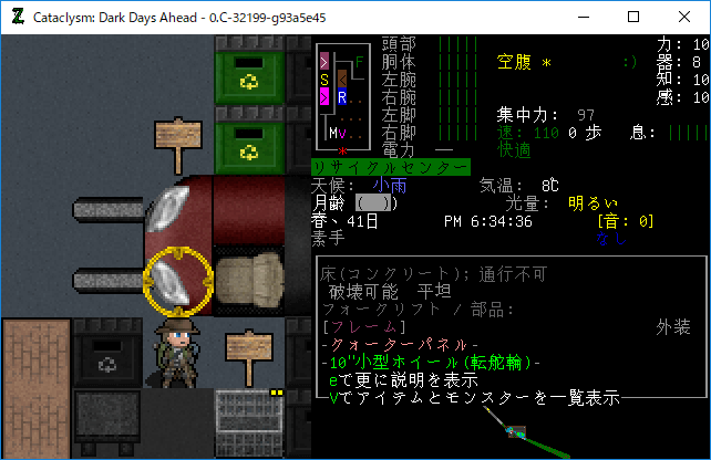 この投稿は「Cataclysm Dark Days Ahead」のプレイ日記です。毎日更新をします。目次はこちら。