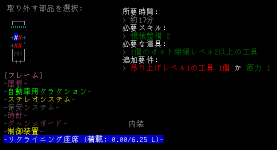 さっそく欲しいパーツを見つけました。『リクライニング座席』は最強号に取り付けたいね。普通の座席よりも積載は低いが座り心地は良いに違いない。