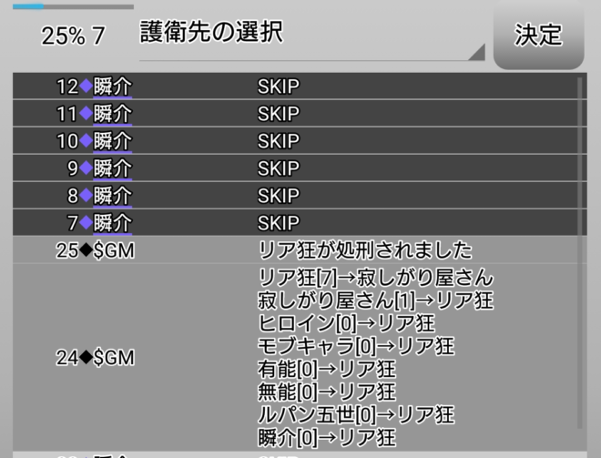 瞬介「だから何としても噛みを避けたくて色々と手を打ったわけだ。おっと?6回スキップをしたら護衛先の選択が出てきたぞ」