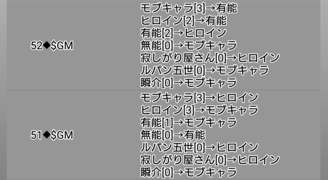 ヒロインは狩人の時に信頼発言2回でした。投票宣言もしていない。このくらいが人狼から狙われないプレイになるのかなあと思います。ちなみに人狼はルパンとノンケ。この直後にリア狂は吊られてしまい、2日目の噛み先は真霊能者の自分で狩人の護衛が成功したのです。