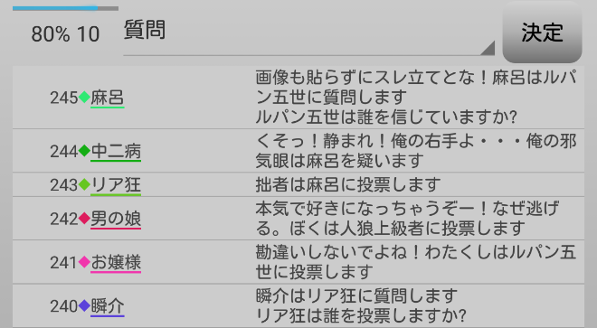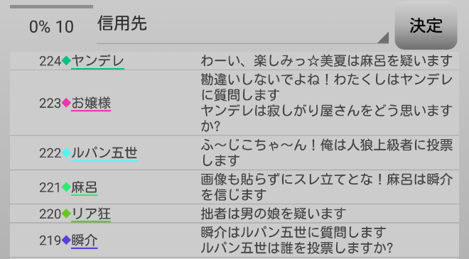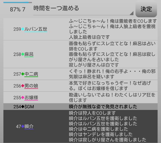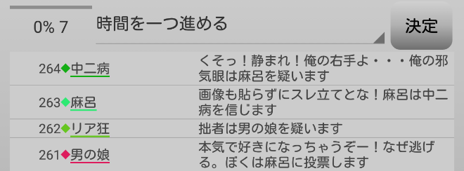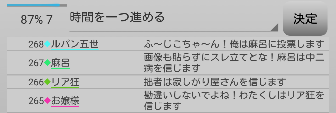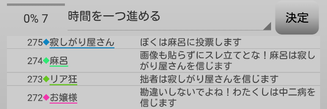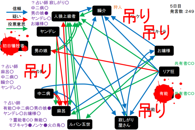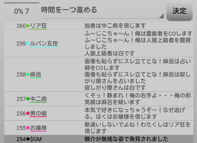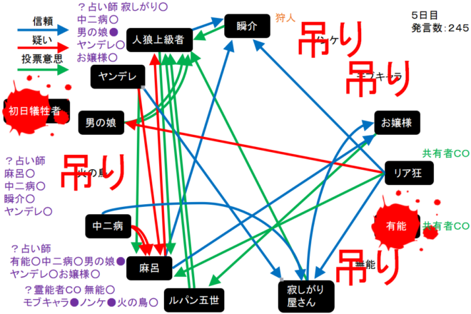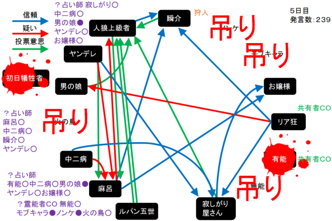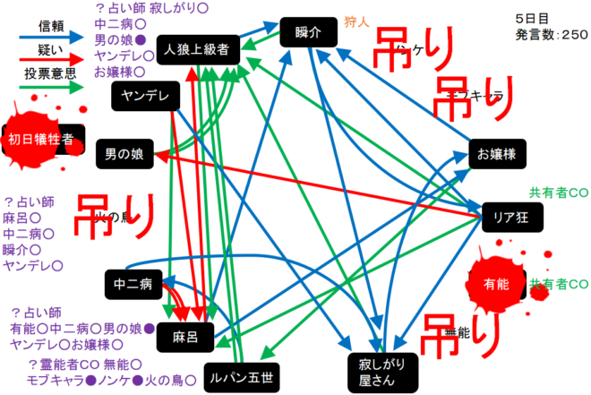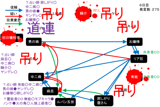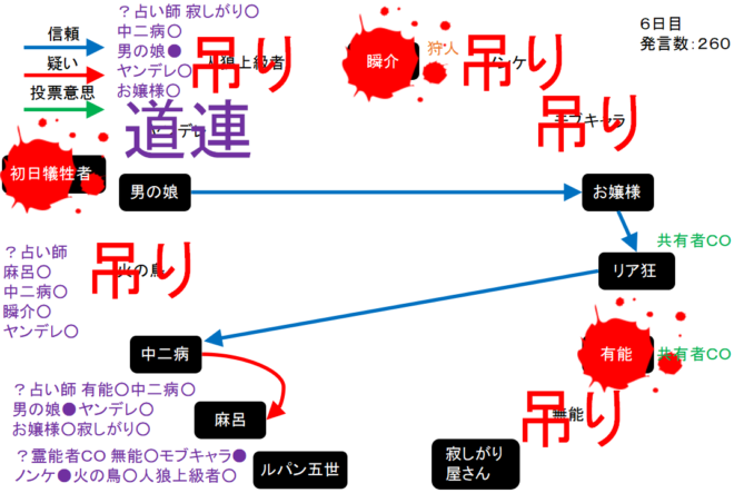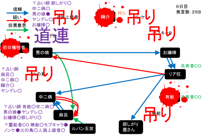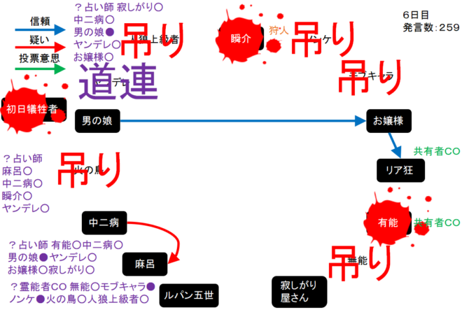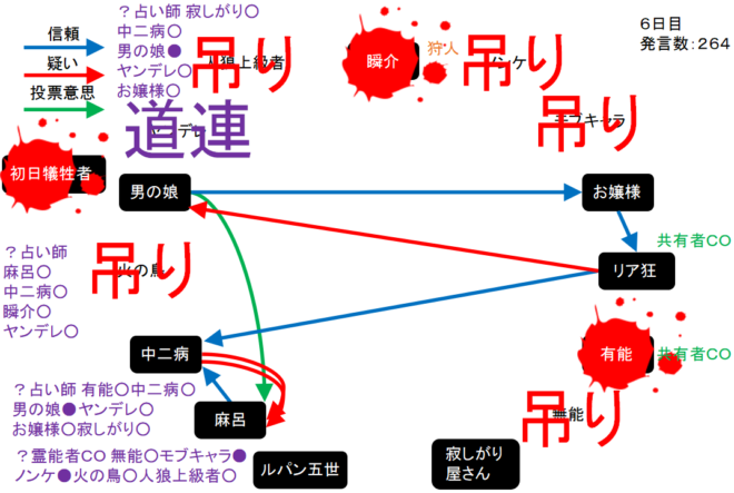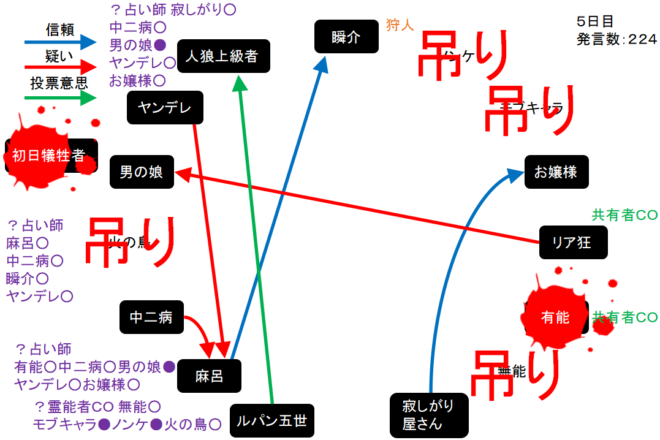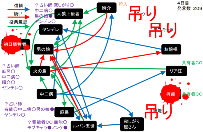確定○が何人かいるのが救いだが、男の娘吊りとかルパン吊りとかしちゃうんじゃない?次にいきます。