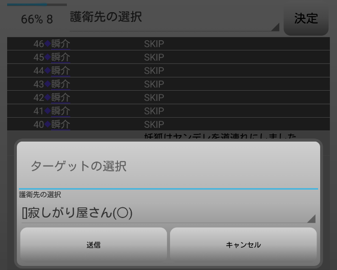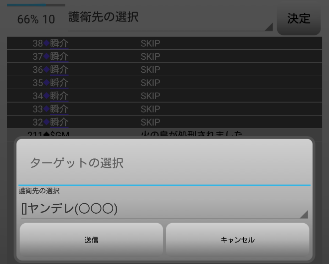 冒頭に書いたとおり、人狼の噛み先は確定○かつ狩人候補のヤンデレだろう。『ヤンデレを護衛』します!