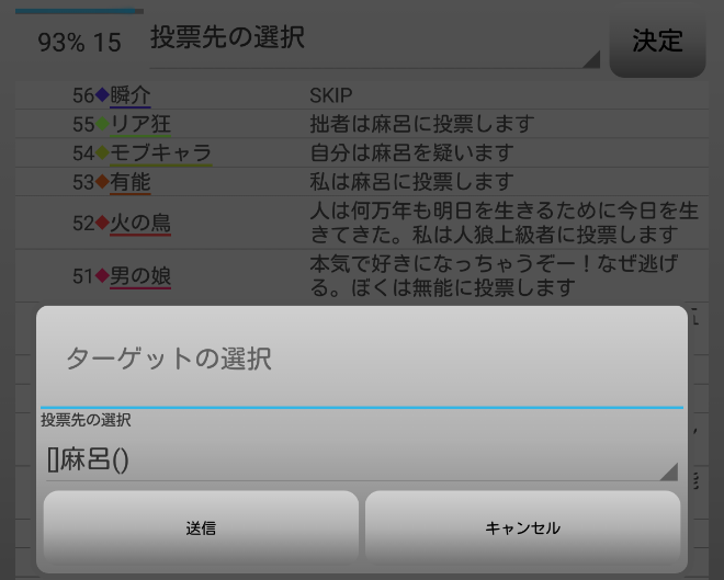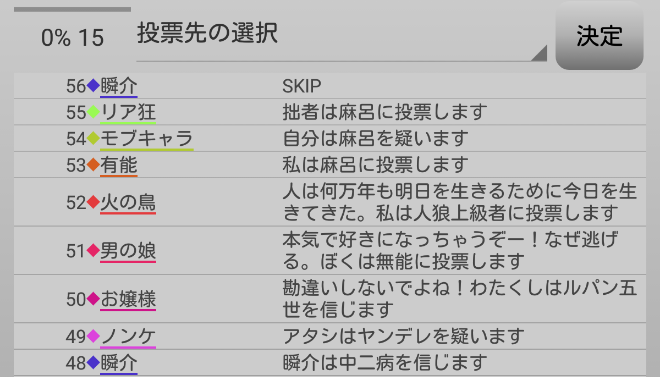 最後の発言になります。麻呂に投票宣言をしてもいいのだが?カウンターされそうだから最後まで『スキップ』をしておこう。