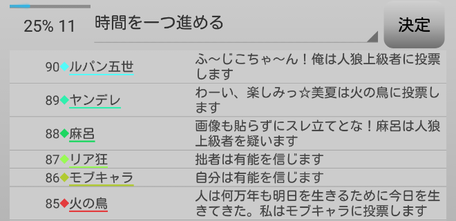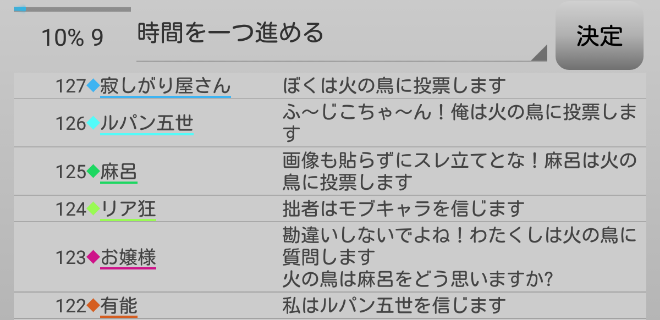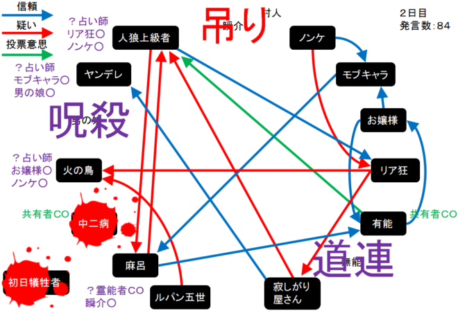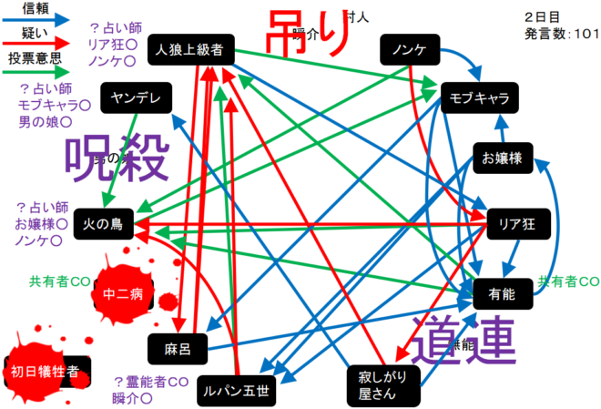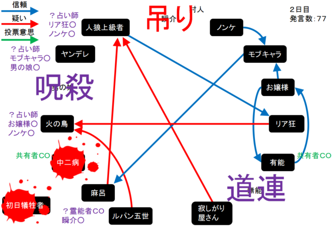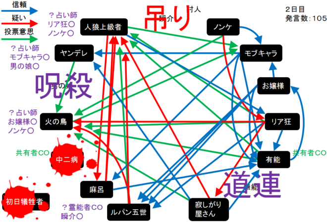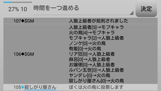 今日は火の鳥吊りだろう。重要なのは明日からの投票だ。次にいきます。