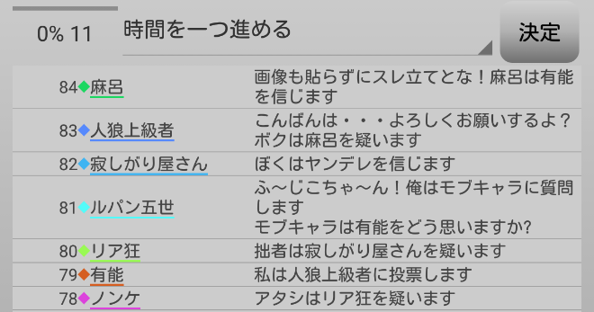このプレイ日記では2日目から3日目の偽占い師吊りを書いて終わるのかな?占い結果からノンケは人狼っぽいよね?次にいきます。