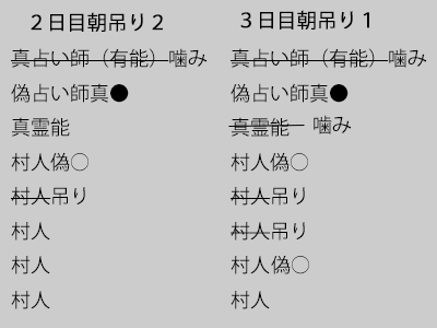 瞬介「例によってかなり怪しい図だけど、議論を混乱させて真占い師の噛みを狙う作戦だったとするなら2日目は人狼が有利になるってこと?」