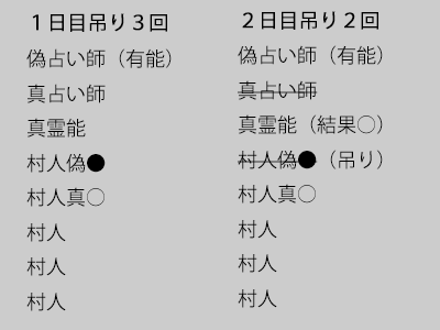 自分が吊られた後に再開したゲームで村が有利なんて、とても気まずい。