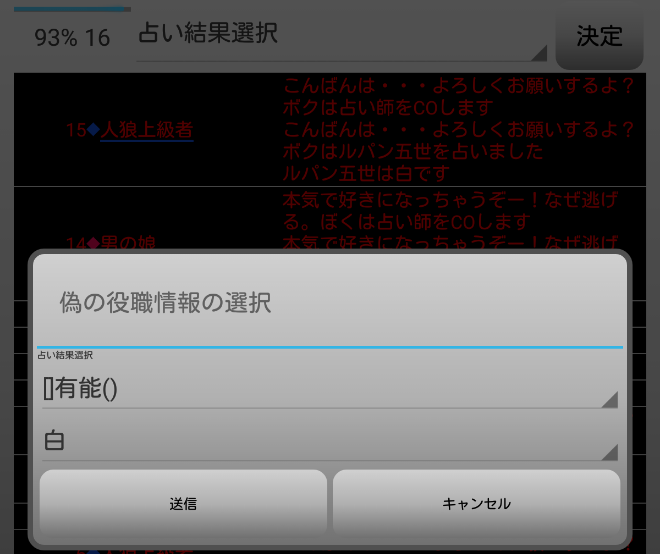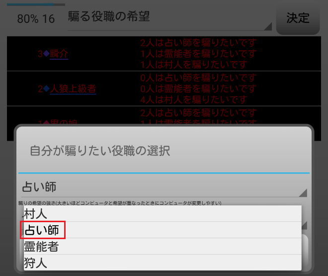 瞬介「希望する役職は占い師にしてと(下の図)。霊ロラされるのは嫌だし潜伏はAIに任せた方が上手くいくだろう」
