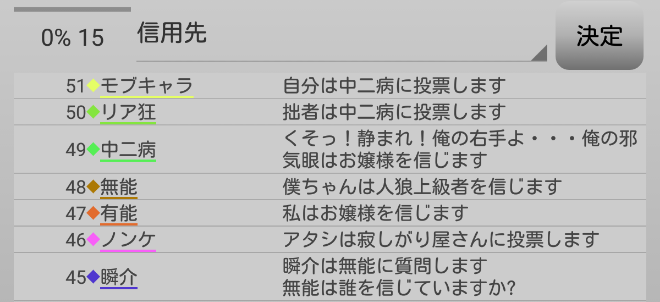 最後の発言になります。無能はどう動くか予想できないので、俺は『無能に信頼発言を送っておきます!』。