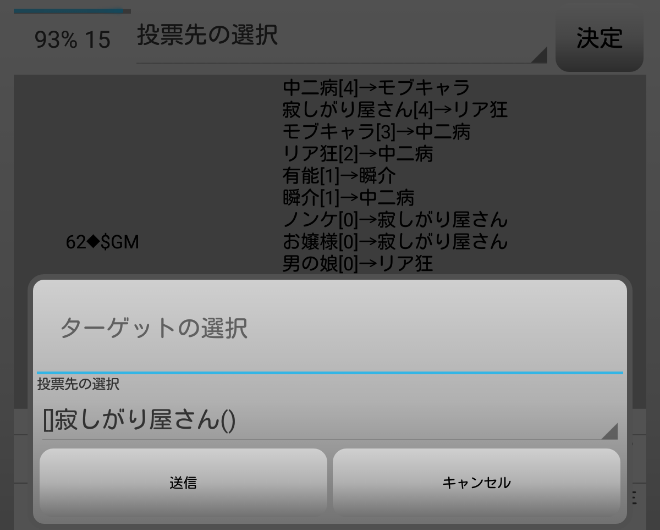 今日、絶対に避けるべきはグレランで男の娘(人狼)が吊られてしまうことだ。ゆえに俺もグレランに参加するぞ。妖狐探しはやめてプレイヤーの投票先を聞こう。さっきから黙っている『ノンケは誰に投票をしますか?』。
