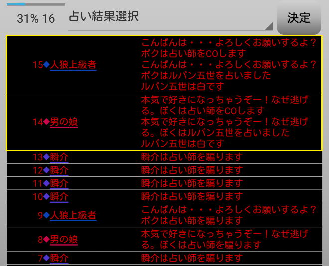 瞬介「何度も何度も占い師を希望するコマンドを押そう。誰かが霊能者を担当してくれるかもしれない」