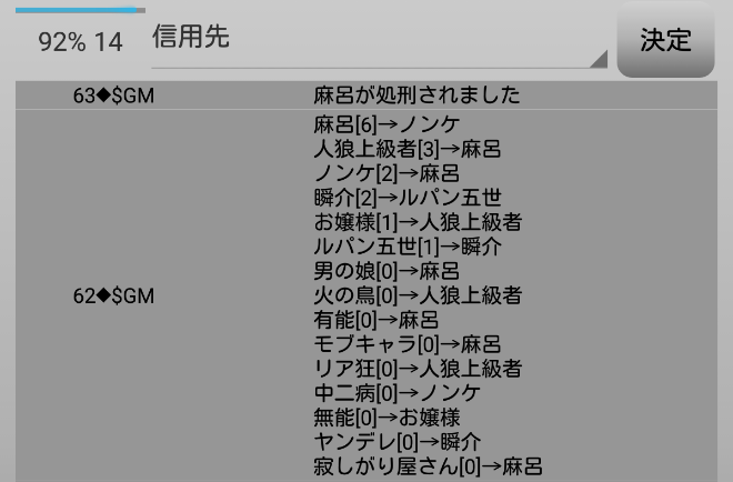 瞬介「麻呂が処刑された。真占い師は占い先を麻呂投票者の中から選ぶだろうか?わからない(泣)」