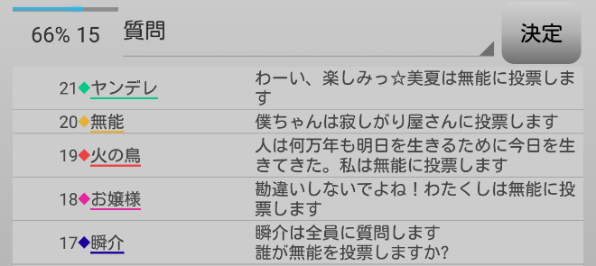 人狼候補に質問をしてしまおうか?『ノンケは誰に投票をしますか?』」