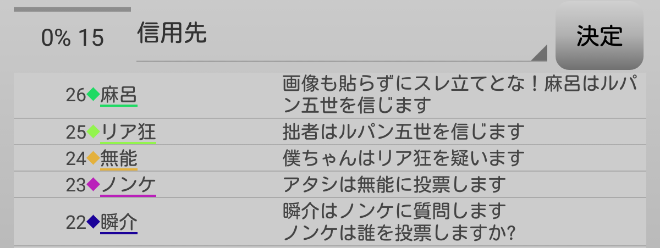 ノンケは人狼で仲間を切り捨てたのかもしれない。まあ今日の投票結果で真実はわかるさ(なら投票先を質問するな!)。