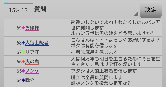 序盤の人狼は人狼を信頼しない(妄想)と考えているのなら質問しても意味ねえだろ!しかし、今のノンケは●を抱えている。もうノンケを軸に議論を展開するしかない。『麻呂はノンケをどう思っていますか?』。