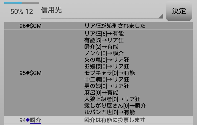 瞬介「男の娘(人狼候補)は狂信者リア狂へ投票を決断。火の鳥や有能もそれに便乗をした」