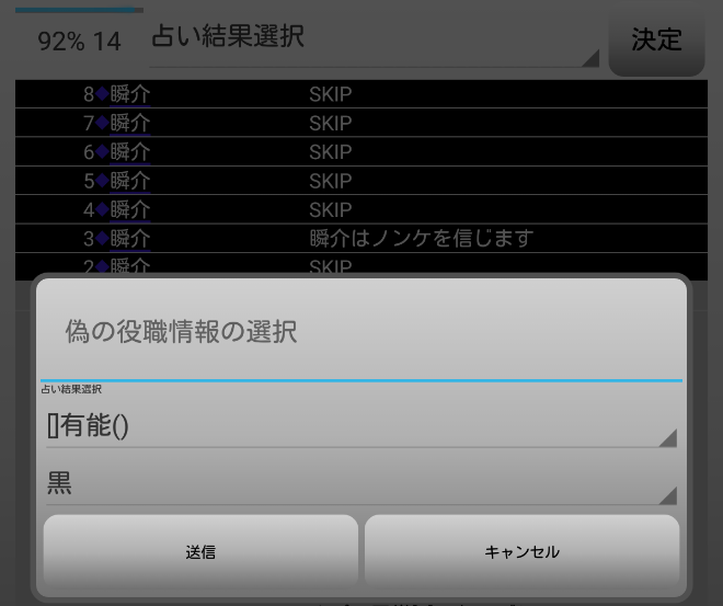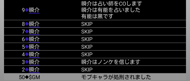 瞬介「よけいな者を占ってグレーを減らす余裕はない。有能●の占い結果を作ります」