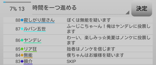 瞬介「有能に投票をする人はいないかなあ?全員に質問をします!『誰か有能に投票をする人はいますか?』」