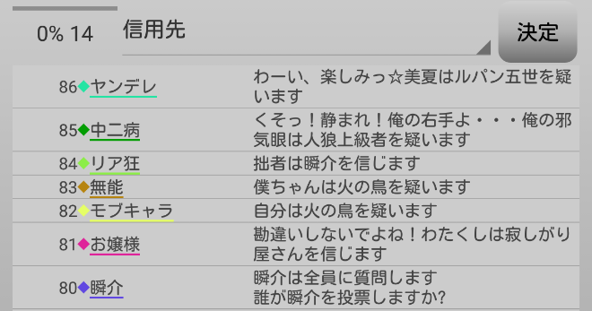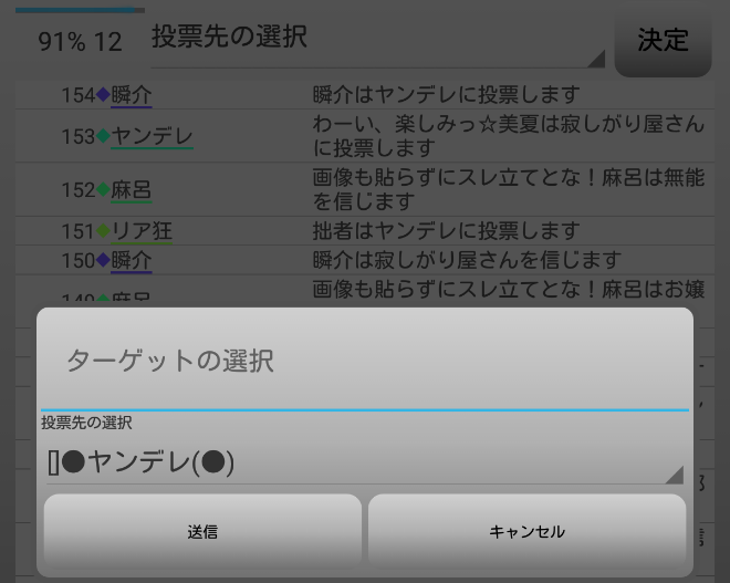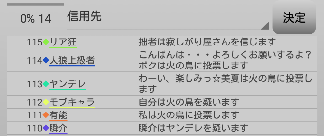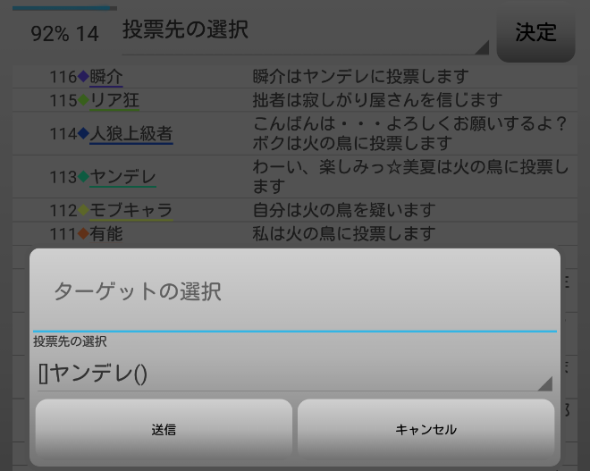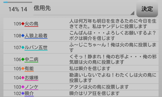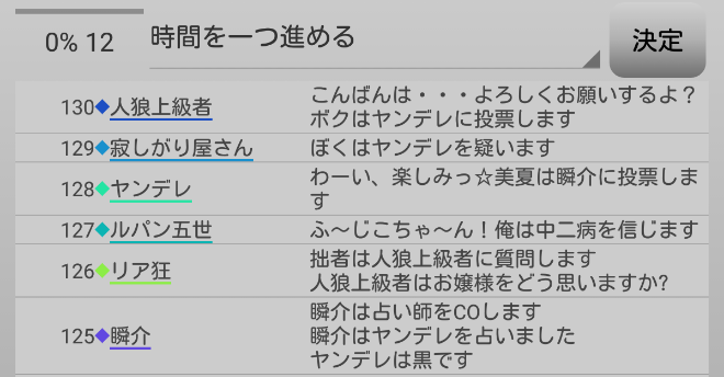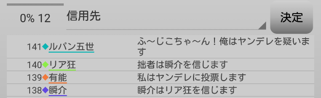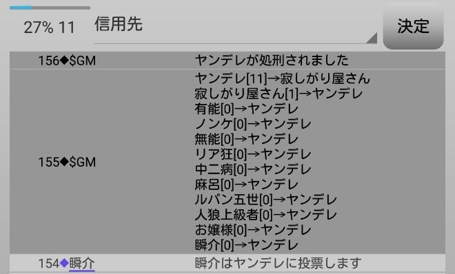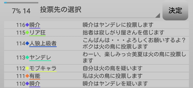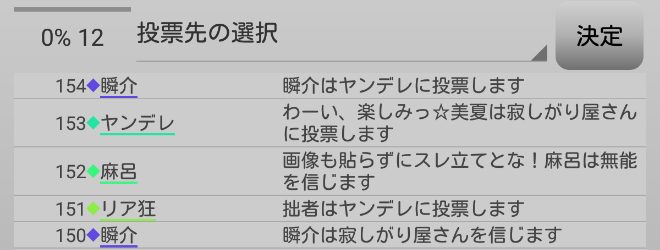 最後の発言になります。俺は人狼の『ヤンデレに投票します!』。