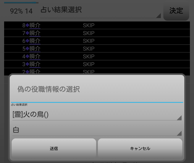 村は俺を真占い師だと考えているに違いない。ここで火の鳥○の霊能結果を出したらどうなるかな?占い結果を発表します!『火の鳥を占って○でした!』」