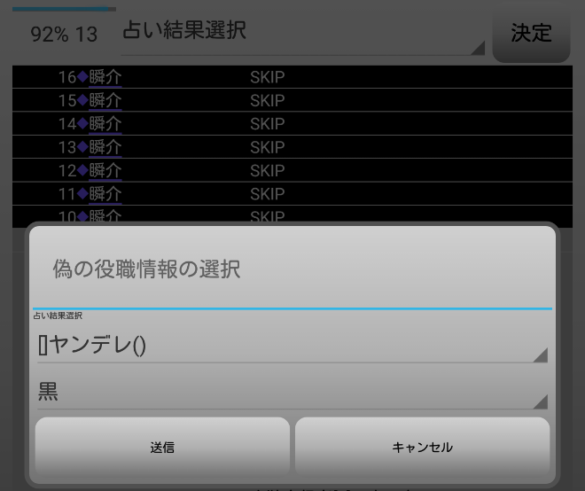 提示する偽占い結果はヤンデレ●だ。これでヤンデレが人狼でなければ大変です。