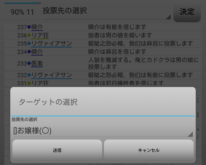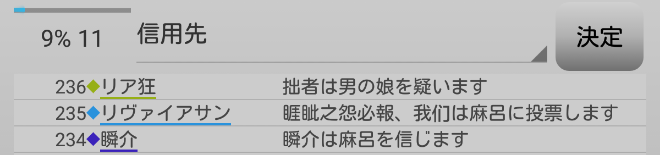 本音を書けば●を持っているリヴァイアサンを吊りたい。だけど○吊りの流れなんでしょう?信頼関係を築いてノンケ投票者を募ります!俺は『リア狂を信頼します!』。