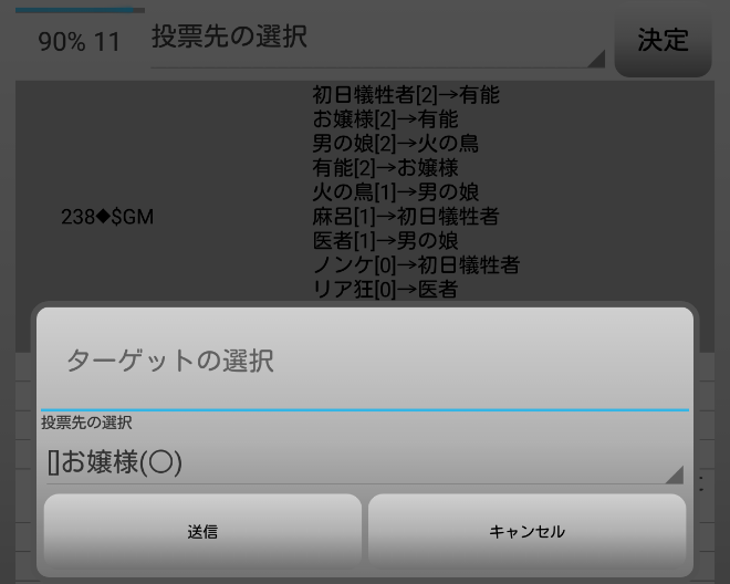 発言表を見るに有能が処刑されそうな気がする。有能は人狼ではない。有能と一緒にお嬢様に投票しようぜ。俺は『お嬢様に投票をします!』。