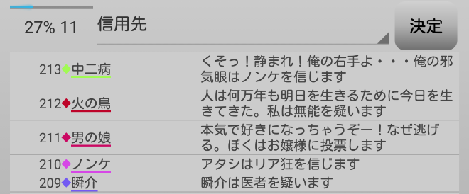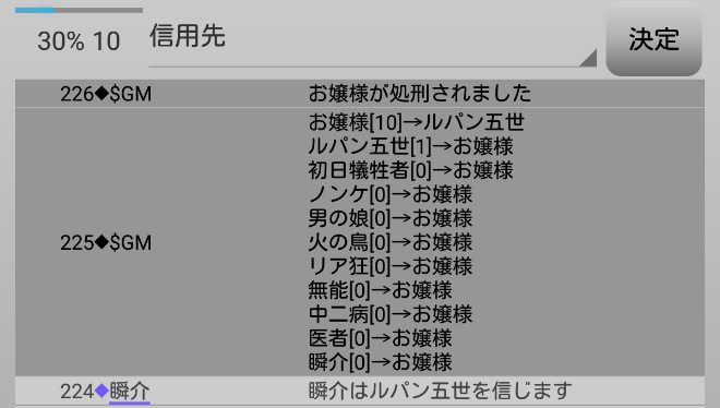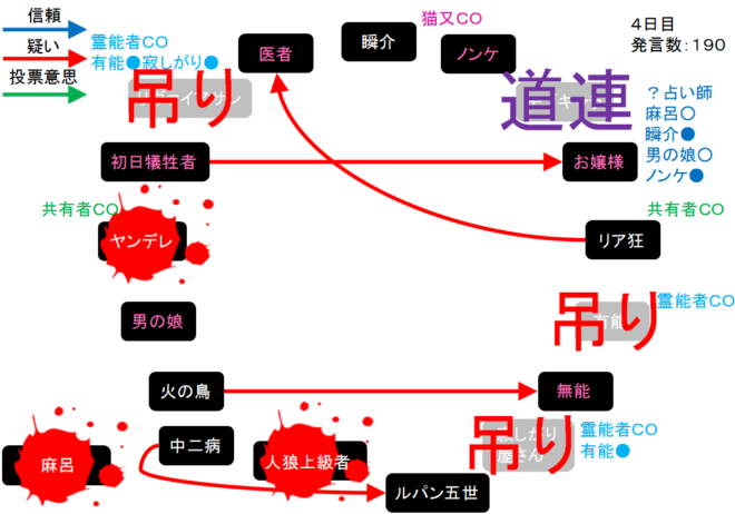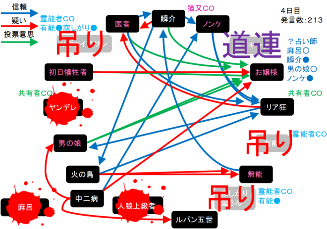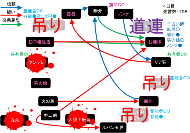 さらに中二病は男の娘(人狼候補)を疑っている。ルパンを疑っているのは怖いけど。俺はノンケを信頼する『中二病を信頼します!』」