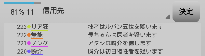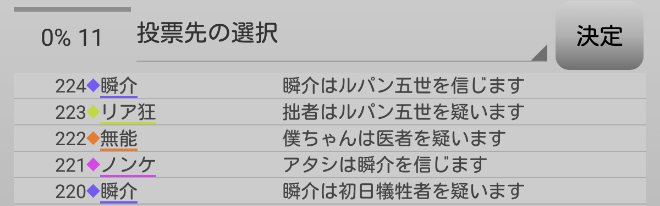 最後の発言になります。俺は『ルパンを信頼します!』。ルパンに投票をしないでください!