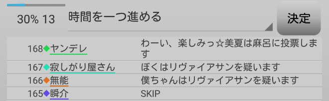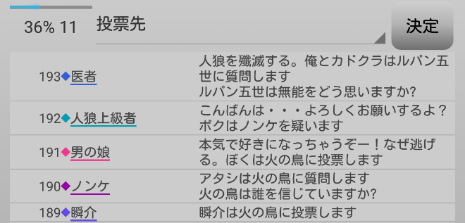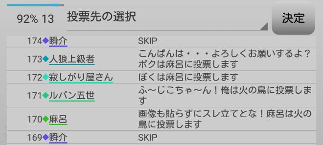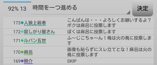 瞬介「議論はこれで終わり。投票の時間になります。『火の鳥へ投票』をして霊ロラを終わらせよう」