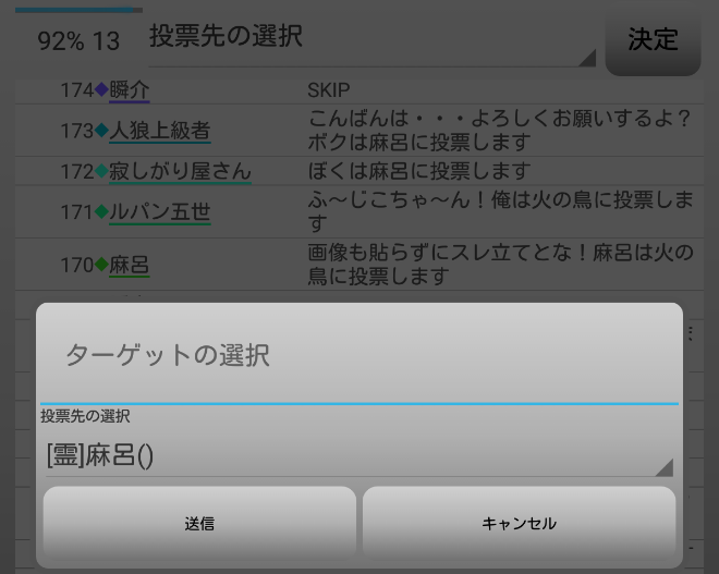 周りと意見を合わせておこう。俺は『麻呂に投票をします!』。