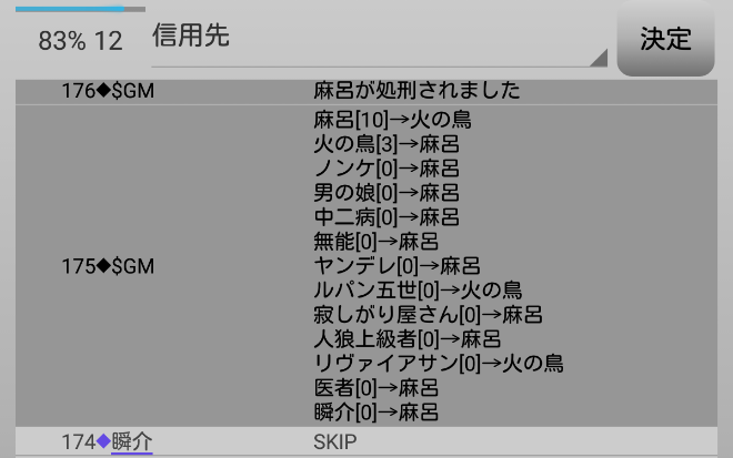 瞬介「火の鳥が処刑をされて霊ロラは終了。今回も負けるんだろうなあ(泣)」