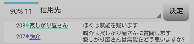瞬介「人狼候補へ無能をどう思っているか質問をしよう。『寂しがり屋さんは無能をどう思いますか?』」