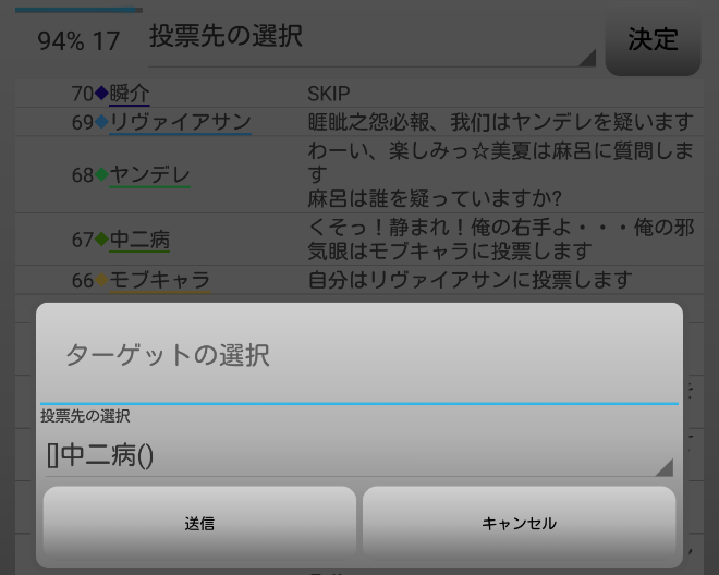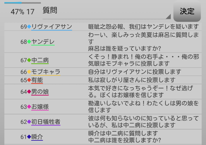 男の娘も潜伏ぎみなプレイヤーだから質問をしよう。『男の娘は誰に投票をしますか?』。