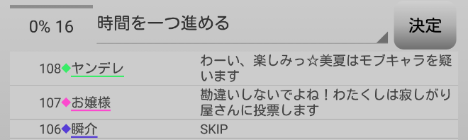 瞬介「議論はこれで終わり。投票の時間になります。人狼の『寂しがり屋さんへ投票』をしよう」