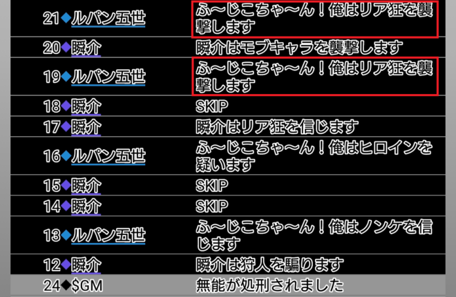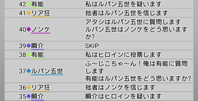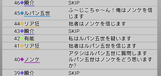 瞬介「ルパンはノンケ信頼の戦略を希望か。ちょっと投票前の発言票を確認してみよう」