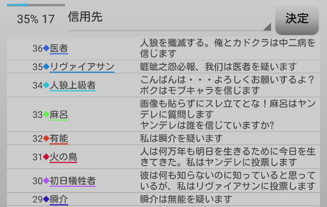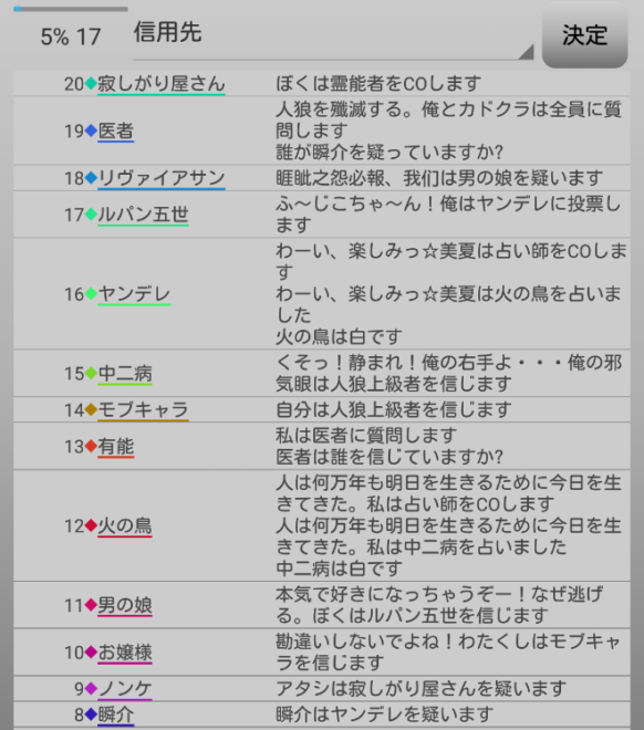 瞬介「無能(霊能者)が処刑をされた。無能の霊能結果を見たかったなあ。今のままでは何の役職が欠けているのか分からない」