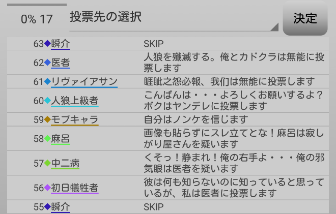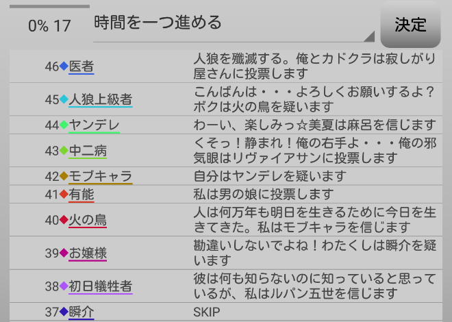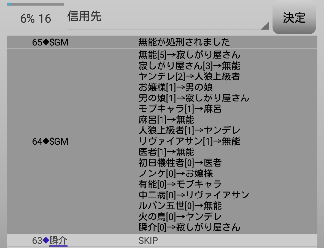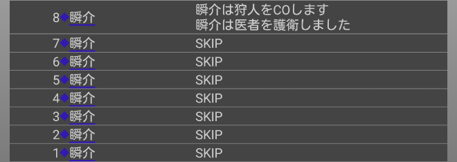 瞬介「俺もルパン(共有者)と同じく無能へ投票意思を示そうか?うーん。発言を抑えるために『スキップ』しよう」